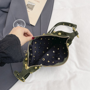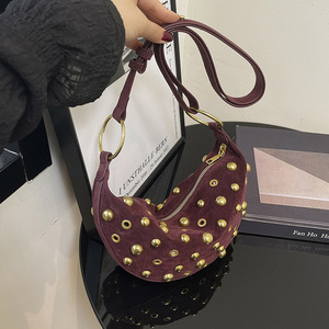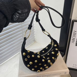 跨境女包新款欧美时尚铆钉新月单肩包个性百搭朋克风斜挎饺子包潮