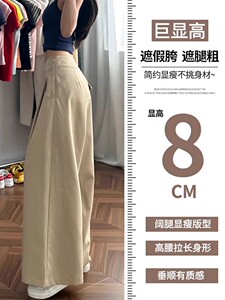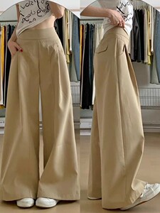 慵懒风裤子设计感卡其色休闲裤女夏季高腰显瘦宽松阔腿裤拖地长裤