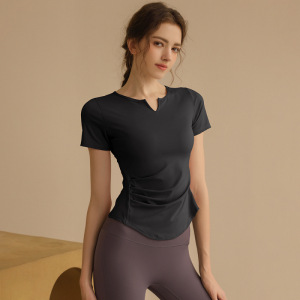 带胸垫瑜伽服女夏季跑步运动上衣短袖感普拉提训练健身服套装批发