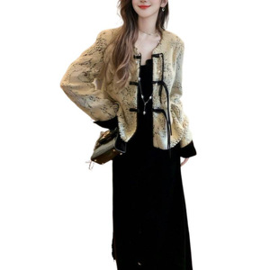 新中式气质国风短外套女装秋冬新款时尚丝绒吊带连衣裙清冷两件套