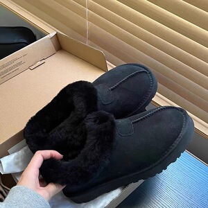 黑色薄底(鞋底厚2.5厘米皮毛一体)