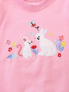 秋季新款女童卫衣欧美风时尚儿童套头衫卡通兔子刺绣中小童套头衫