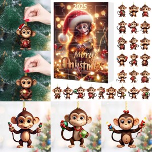 跨境2025圣诞节倒计时24天日历盲盒 卡通猴子款式圣诞树挂饰