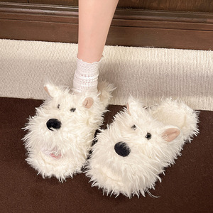 高颜值少女风可爱潦草小狗毛毛拖秋季新款潮流百搭舒适一字拖鞋女
