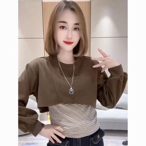 假两件2025秋季新款短款卫衣女时尚休闲长袖小个子宽松遮肉显瘦