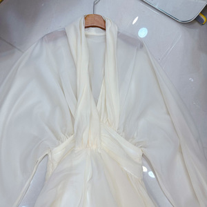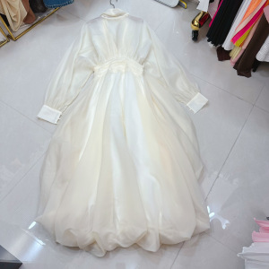 十三行澳洲名媛深V领连肩灯笼袖收腰蓬蓬长款连衣裙宴会A2#8518