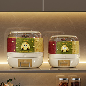 厨房分类杂粮米桶防虫防潮密封罐分格家用米缸储米箱可旋转收纳盒