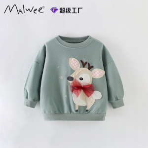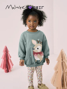跨境malwee女童卫衣秋冬新款欧美中小童圆领长袖洋气小女孩套头衫