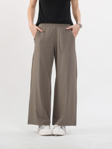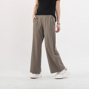 lulu女士中腰阔腿裤宽松垂感休闲裤女显瘦速干透气长裤黑色运动裤