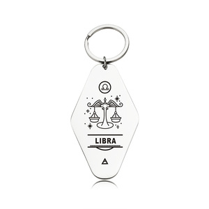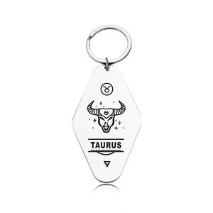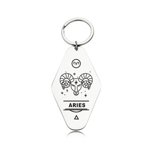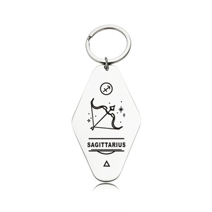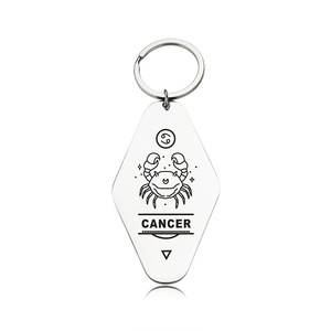 跨境亚马逊创意十二星座不锈钢钥匙扣菱形铭标识挂牌酒店客房编号