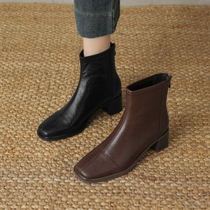 34—42跨境大码靴羊皮粗跟短靴女秋冬新款方头瘦瘦靴后拉链中跟靴