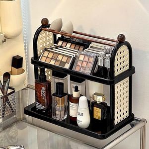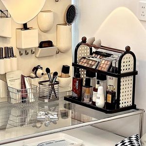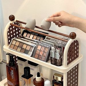 中古风桌面化妆品置物架梳妆台侧边多层护肤品眼影口红香水收纳架