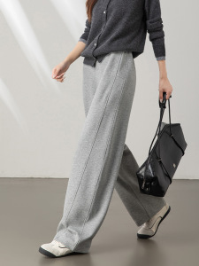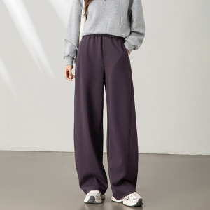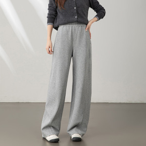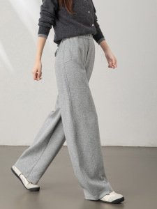秋季新款阔腿弯刀裤女针织高腰运动休闲直筒长裤慵懒风卫裤女