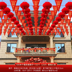 【100米全红旗子】蜂窝灯笼25#(150个)