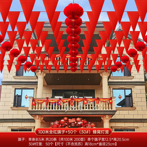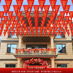 结婚院子彩旗装饰拉花农村婚房布置婚庆用品大全婚礼喜字灯笼彩带