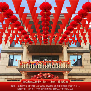 【100米全红旗子】蜂窝灯笼30#(150个)