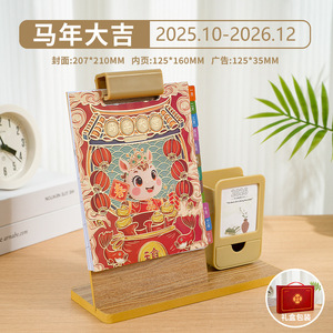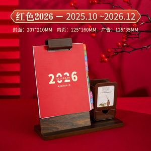 2026马年木质笔筒台历ins多功能笔筒收纳日历摆件礼盒装台历定制