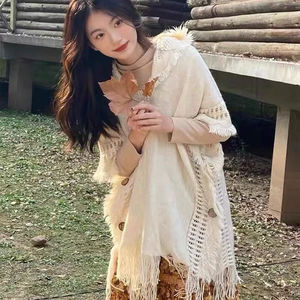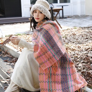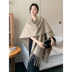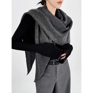 新款2025羊毛混纺三角大披肩女士秋冬安哥拉红外搭保暖针织大围巾