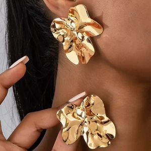 欧美跨境时尚设计感金属光面折叠耳钉女热销几何花瓣夸张个性耳饰