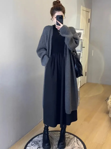 秋冬季2025新款韩剧茶系穿搭一整套时尚开衫外套毛衣连衣裙两件套