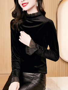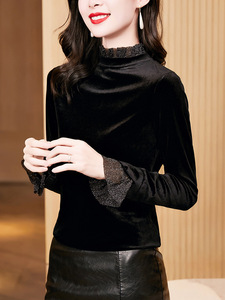 韩版秋装洋气网纱黑色丝绒半高领女士打底衫春秋2025气质秋季上衣