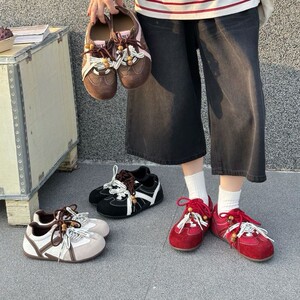 SML复古拼色德训鞋2025年新款秋软底厚底内增高简约运动休闲鞋女