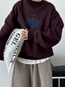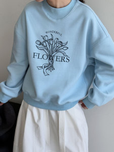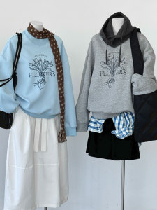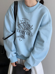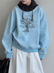 NS 基础百搭郁金香复古桃心领廓形卫衣女秋季新款慵懒风上衣2012