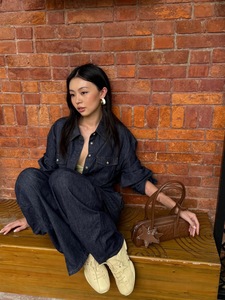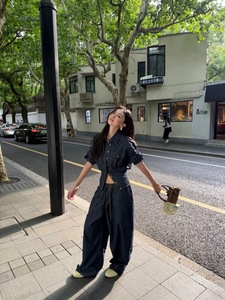南油女装批发RA新品 轻松抽绳阔腿长裤25早秋简约休闲宽松牛仔裤