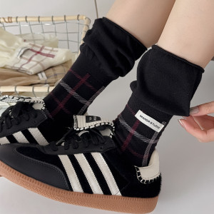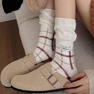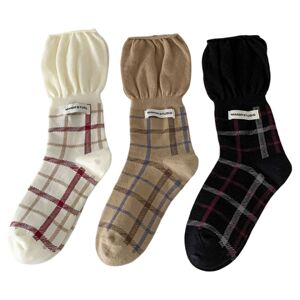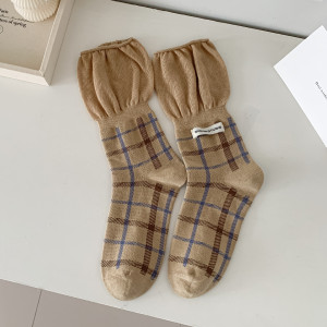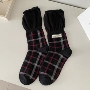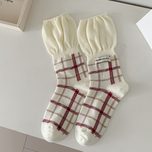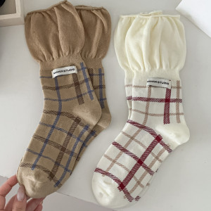 巴黎欧货格子堆堆袜女时尚小众设计款泡泡中筒袜复古高颜值长袜子