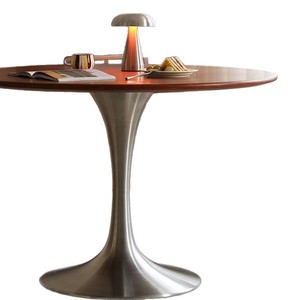 实木圆桌复古小户型简约锈钢郁金香中古风圆形餐桌椅组合岩板餐桌