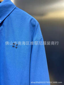 毒家正确版 M1U家字母刺绣蓝色日系清新衬衫高街宽松百搭男女夹克
