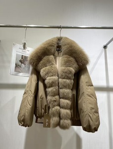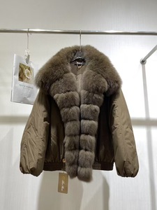 冬季新款女式短款羽绒服狐狸毛皮草白鹅绒羽绒服女宽松派克服外套