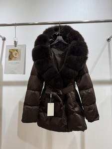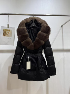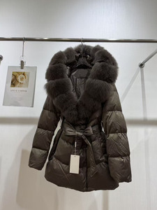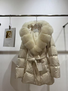 2025冬新款气质腰带狐狸毛长款羽绒服女收腰韩版百搭连帽长款外套