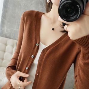 短款外套女秋冬新款针织衫韩版大码V领外搭开衫白色浅灰色