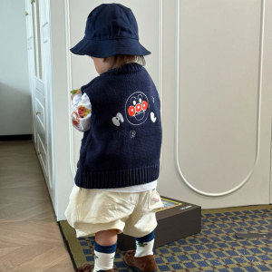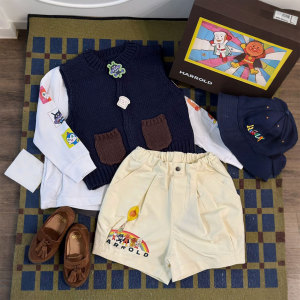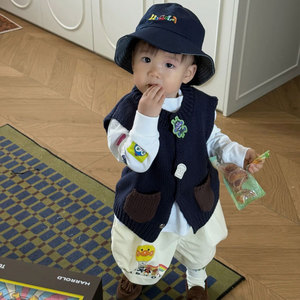 男童春秋套装儿童2025新款痞帅圆领针织马甲女宝宝洋气T恤裤子薄3