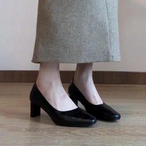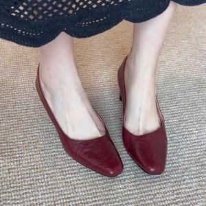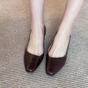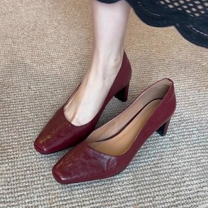 羊皮版~复古方头通勤小单鞋女一脚蹬时尚简约休闲职业高跟鞋