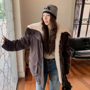 2025冬季军绿色羊羔毛棉衣女时尚韩版风冲锋衣外套内里加绒棉服女