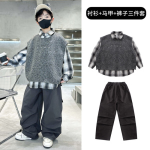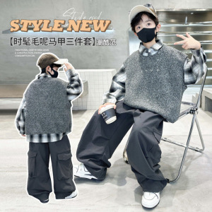 男童秋季套装2025新款韩版潮酷儿童春秋装男孩帅气时髦马甲三件套