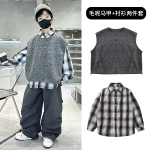 马甲加格子衬衫