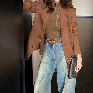 2025法式名媛时髦老钱风复古质感轻奢休闲宽松西装外套女高级质感