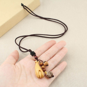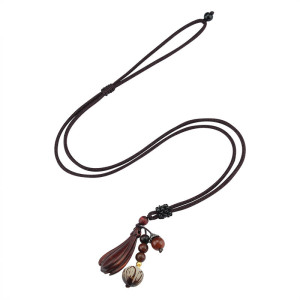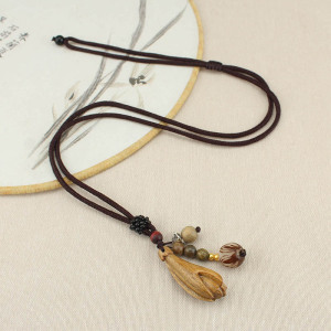 复古简约玉兰花檀木吊坠项链女菩提莲花长款毛衣链文艺民族风配饰