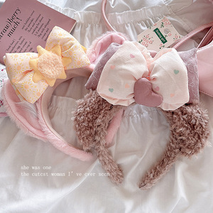 卡通可爱咖色毛绒耳朵蝴蝶结发箍女高级感洗脸头箍游乐园拍照发饰
