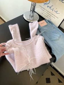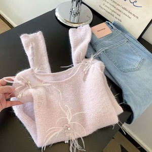 法式重工镂空工艺破洞针织衫女秋季修身辣妹长袖上衣