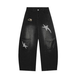 嘉衣库潮牌2025秋季新款美式复古弯刀牛仔裤男女vibe宽松阔腿长裤
