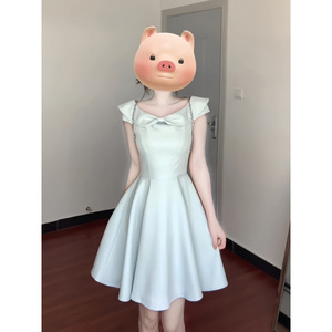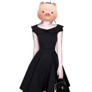 法式法式赫本风黑色连衣裙女夏新款感超好看a字蓬蓬小黑裙子