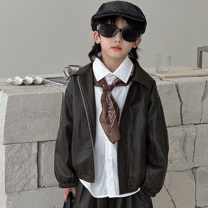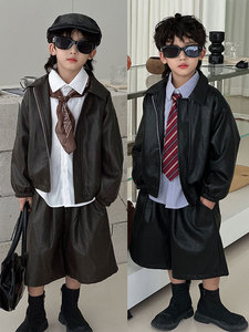 男童套装2025秋季新款皮衣儿童潮流帅气皮夹克短裤两件套一件代发