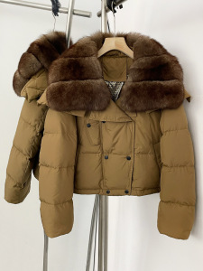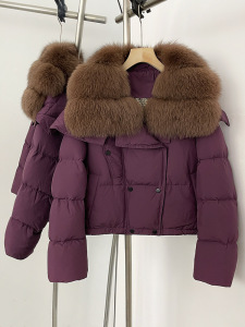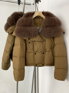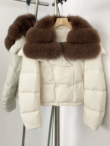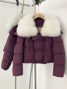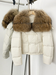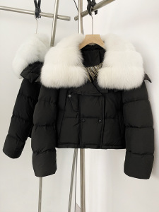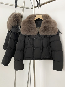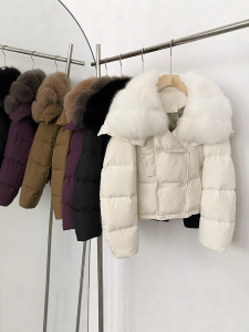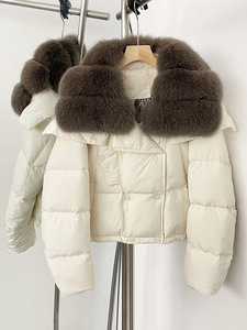 25冬季新款银狐狸大毛领白鸭绒小个子保暖韩版气质通勤短款外套女