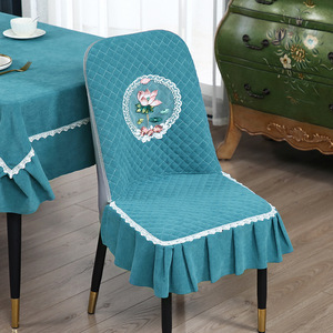 荷塘月色弧形椅子套罩高级家用餐桌餐椅套四季新款座椅套凳子椅套