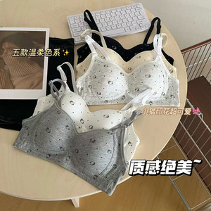 可爱猫咪高中学生薄款透气少女内衣女士小胸聚拢舒适亲肤文胸罩