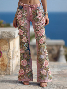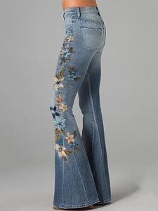 欧美跨境独立站亚马逊新款 3D数码印花 女士时尚显瘦牛仔喇叭裤